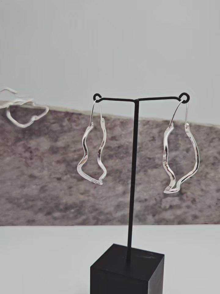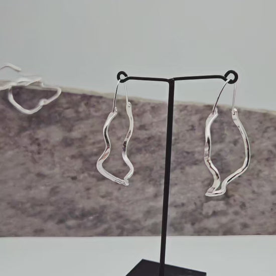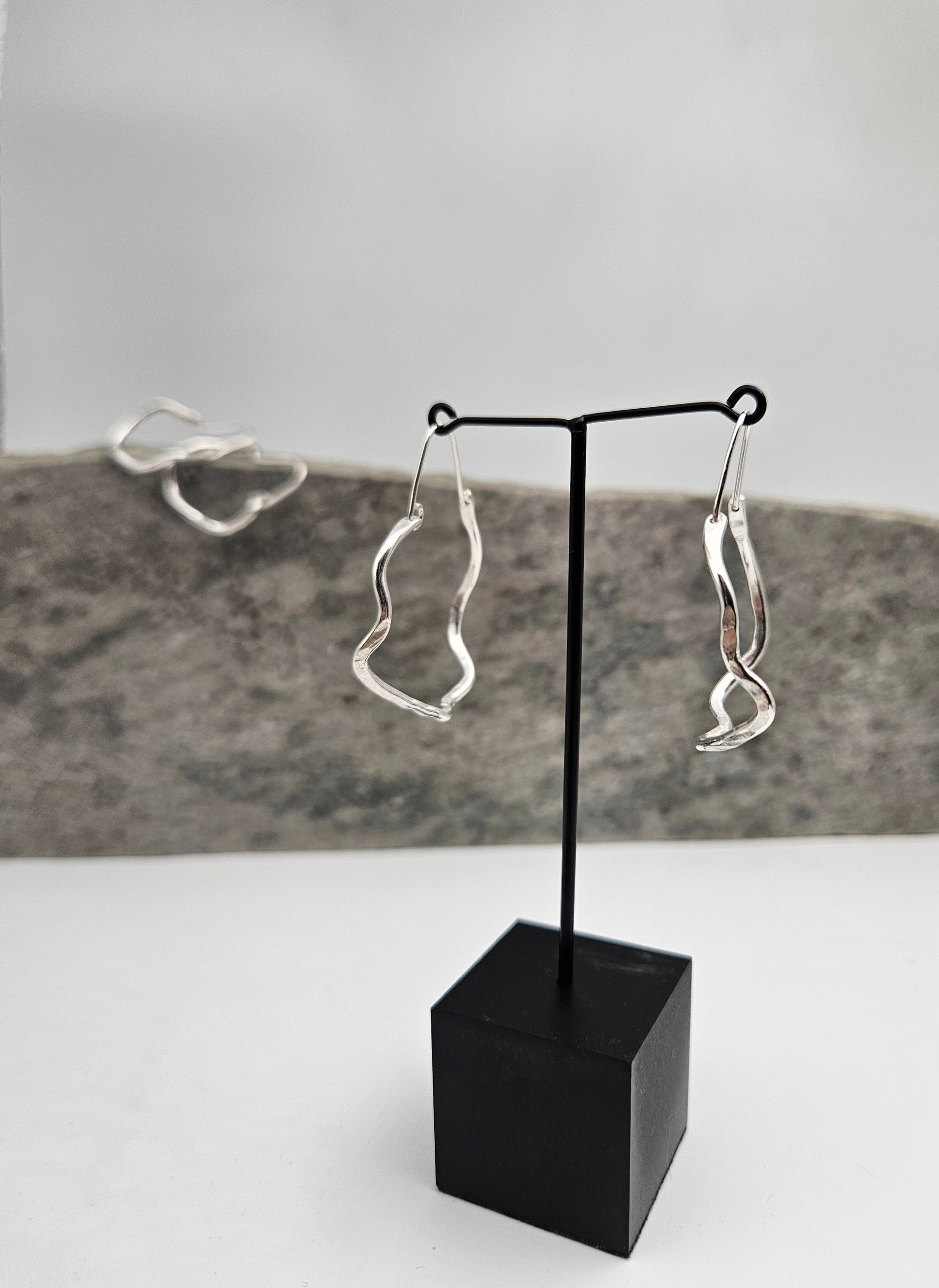 Øreringene er håndlaget av sølvtråd, formet individuelt og smidd med hammer for å lage unike par med glitrende fasetter.